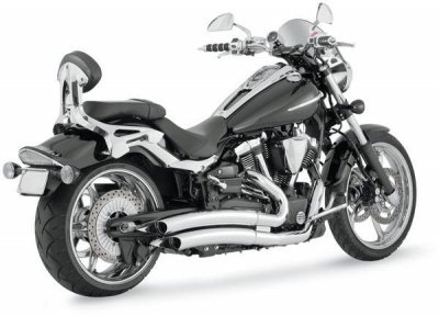 Vance & Hines Big Radius 2-Into-2 Exhaust System For Yamaha XVS950 V-Star/XVS950CT 2009-2012 - 18527Vance and Hines Big Radius 2-Into-2 Exhaust System For Yamaha XVS950 V-Star/XVS950CT 2009-2012 - 18527 Nothing else matches the style, performance and perfect sound of Big Radius 2-Into-2 PC for the Raider and Warrior motorcycles Systems incorporates proprietary Power Chamber technology that revolutionizes metric cruiser exhaust design with increased mid-range power and less noise; just the perfect sound Includes removable baffles Made in the U.S.A. Included Items (1) Bracket (1) Header (1) Front heatshield (1) Rear top heatshield (1) Rear bottom heatshield (1) Front muffler heat shield (1) Rear muffler heatshield (2) Nylon cable ties (2) Dogbone nut plates (2) Spacers (4) 5/16x5/8 inches Flangehead bolts (2) 10mmx25mm Buttonhead bolts (4) 36 Hose clamps (8) 20 Hose clamps NOTE: Not all products are legal for sale or use on pollution controlled vehicles. Check your local laws and manufacturers information. Installation of a new exhaust system may change your motorcycles fuel-air mixture requirements. Please consult the exhaust manufacturer directly with questions regarding any modifications that may need to be made during, or after, installing their product. Exhaust discoloration (bluing) is caused by engine conditions such as cam timing, fuel-air mixture, operating temperature, etc. It is not the result of defective manufacturing; therefore it is not covered by warranty. 2012 Yamaha XVS950 V-Star 2011 Yamaha XVS950 V-Star 2010 Yamaha XVS950 V-Star 2009 Yamaha XVS950 V-Star 2012 Yamaha XVS950CT V-Star Tourer 2011 Yamaha XVS950CT V-Star Tourer 2010 Yamaha XVS950CT V-Star Tourer 2009 Yamaha XVS950CT V-Star Tourer