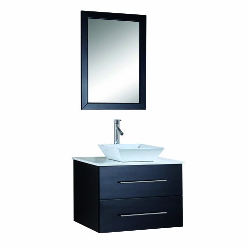 Virtu USA MS-560S-ES Marsala 30-Inch Wall-Mounted Single Sink Bathroom Vanity with White Stone Countertop, Faucet and Mirror, Espresso Finish?Inspired by the Clarissa, the Marsala vanity captures the essence of contemporary design scaled down to perfection. Built of high quality solid oak and finished in espresso, this wall-mounted cabinet has one functional European slider drawer and brushed nickel hardware. A durable white stone countertop is crowned by a beautiful designer basin with stylish faucet. The matching framed wall mirror accents the elegant euro-modern design.