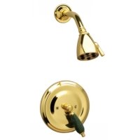 Phylrich PB3158FTO-047 Carrara Pressure Balance Shower Set - Trim Only?Phylrich Pressure Balance Shower Set - Trim OnlyCarrara CollectionGreen Marble HandleIncludes K803 Shower HeadIncludes Smooth PlateShower Head, Smooth Plate and Handle are All IncludedTemperature Controlled by HandleTemperature Control With 3.6°F (2°C) of set Point Even With a 50% Water Pressure DropAnti-Scald2.5 GPM @ MaxLess Rough-In ValveRough-In Valve RequiredRough-In Valve Must be Added to Complete Trim