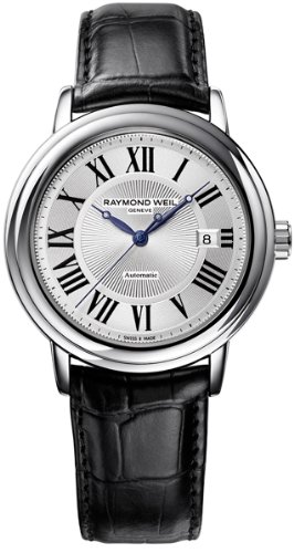 NEW RAYMOND WEIL MAESTRO MENS WATCH 2847-STC-00659- WITH MANUFACTURER SERIAL NUMBERS - Silver Dial - Self Winding Automatic Movement - Sapphire Crystal Exhibition Back Case - 3 Year Warranty - Guaranteed Authentic - Certificate of Authenticity - Manufacturer Box & Manual - Polished Steel Case - Black Leather Strap with Crocodile Pattern - Scratch Resistant Sapphire Crystal - 50 Meters / 165 Feet Water Resistant - 41.5mm = 1 5/8" Case, 7" Adjustable Strap - Tang Buckle Also Known As Model # 2847.STC.00659 / 2847 STC00659 / 2847STC00659